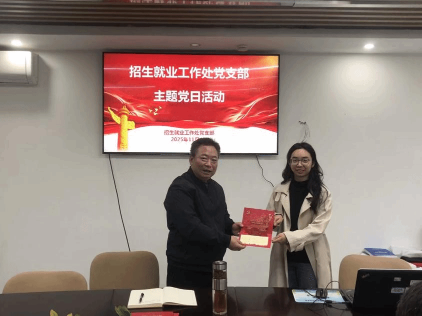活动现场,招生就业工作处党支部书记莫春华同志为每一位党员送上 “政治生日” 贺卡,氛围庄重而热烈,当贺卡递到党员手中时,大家深切感受到组织的关怀与期望,荣誉感与责任感油然而生。